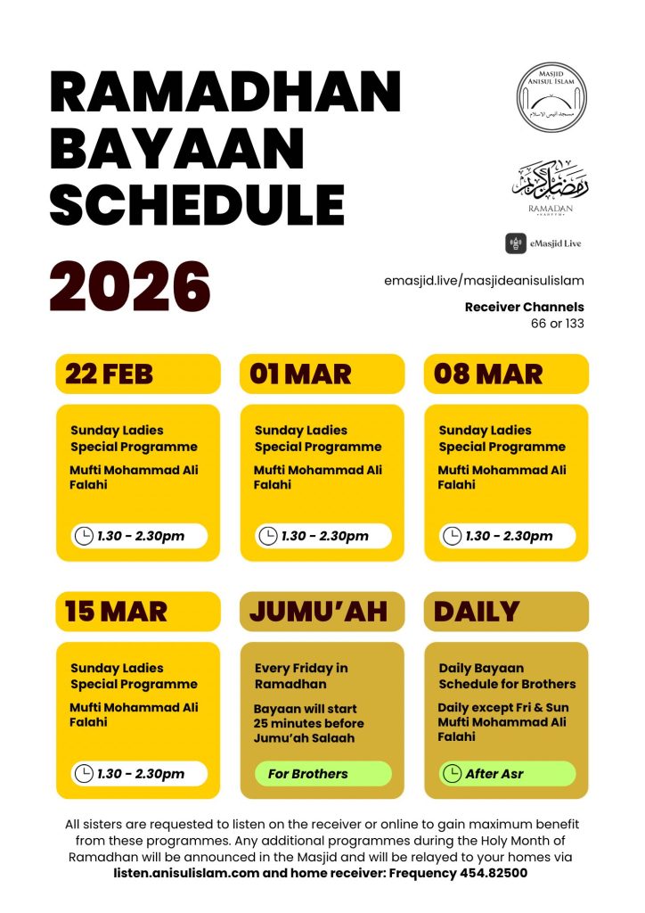• Programmes for Ramadhan 2026