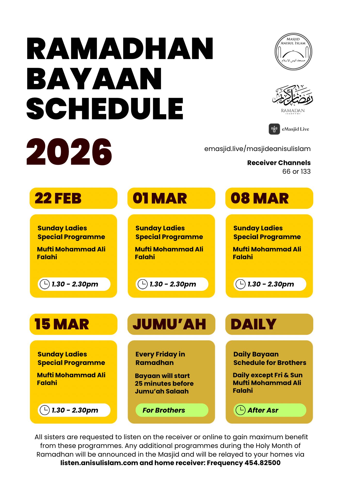 Programmes for Ramadhan 2026